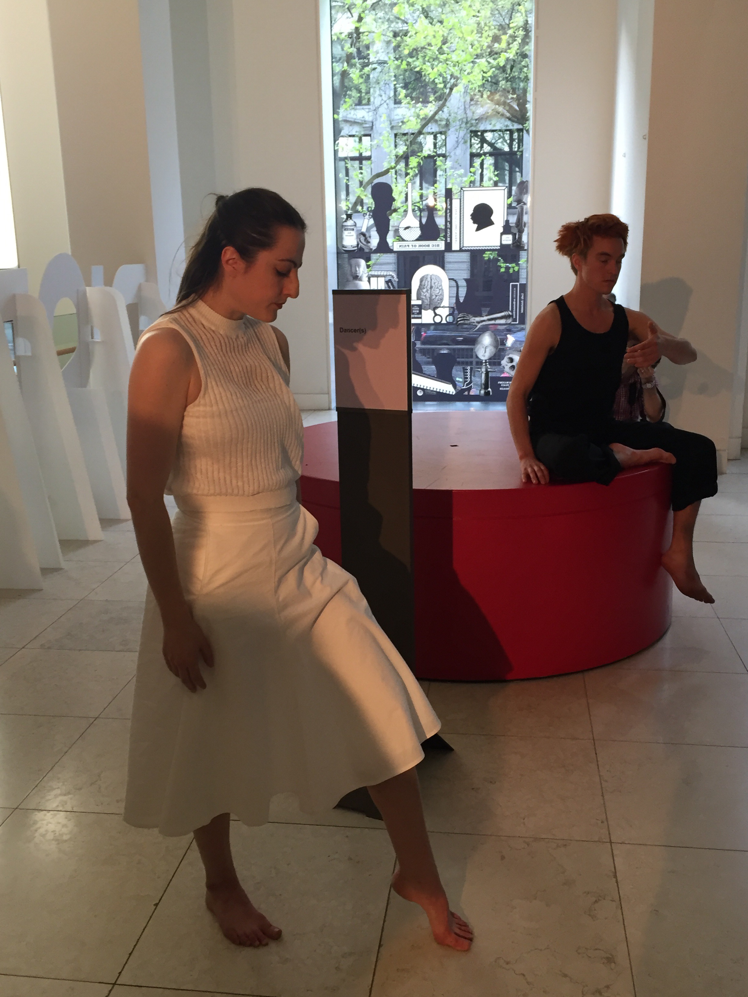 When I entered the Wellcome Building I was shocked at how busy it was! It was great to see a museum buzzing on a Friday night, and then I noticed within the busy crowd some were dancers, moving slowly and subtly on a raised platform. We all stood and watched for a while as they moved from position to position, almost hypnotised, before they stepped down and we all like sheep followed them up the main spiral staircase in the museum. This theme of dancers immersed in the building itself was all over the evening, with dancers popping out of the exhibitions and exploring the theme of display through their performances scattered around the museum.